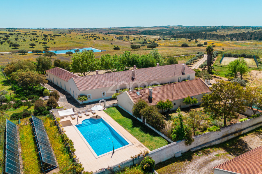 Great Investment Opportunity in Reguengos de Monsaraz Unique Property on the Shores of the Great Alqueva Lake, an Area Greatly Benefited by the Touristic Development Sparked by the Creation of the Great Lake. This vast agricultural property in Reguengos de Monsaraz stands out not only for its robust agricultural production but also for its immense touristic potential. ????Main Advantages of the Property:Agricultural Diversity: ???? Eucalyptus: About 135 hectares, with a previous additional 47 hectares of eucalyptus plantation. ???? Vineyard: 22 hectares, 9 of which are currently producing. ???? Cork Oak Forest: 42 hectares of dense areas, ideal for sustainable exploitation. ???? Pasture: 90 hectares suitable for livestock. ???? Cultivable Land: 63 hectares between irrigated and dry crops. ???? Orchard: A variety of fruit trees in production. ???? Irrigation Equipment: Includes a pivot and a cannon for irrigation. ???? Support Infrastructure: ????️ Water Capture: Possibility to draw water from Alqueva (pipeline and necessary equipment are present; the license will need to be requested by the buyer to replace the existing one). ???? Storage: Two support warehouses (about 950 m²) with all agricultural equipment and machinery included in the sale. ???? Hunting: Potential for hunting activities given the rich biodiversity of the area. ???? Residential Facilities: ???? Main Residence: The main building of 650 m² blends charm and comfort, partially furnished, includes 5 suites, a magnificent lounge and dining room, and an equipped kitchen. This area also features a bathroom supporting the pool, laundry room, and several storage areas for efficient housekeeping. ????️ Secondary Residence: 104 m², currently under renovation to be completed by the buyer. Includes two bedrooms, a living room, a bathroom, and a kitchen. ????️ Touristic Potential: ????The privileged location turns this property into a potential flagship for the development of touristic projects, including rural lodging and ecotourism activities. The residences offer excellent opportunities for those looking to explore residential tourism or boutique hotel business, taking advantage of the natural beauty of the area and the proximity to the lake.????️ Invest in the Future:???? A property that guarantees a solid agricultural return and offers a wide range of opportunities in the growing tourism and agricultural sectors. With the existing infrastructure and breathtaking landscape, the property has everything to become a profitable and sustainable investment. ????